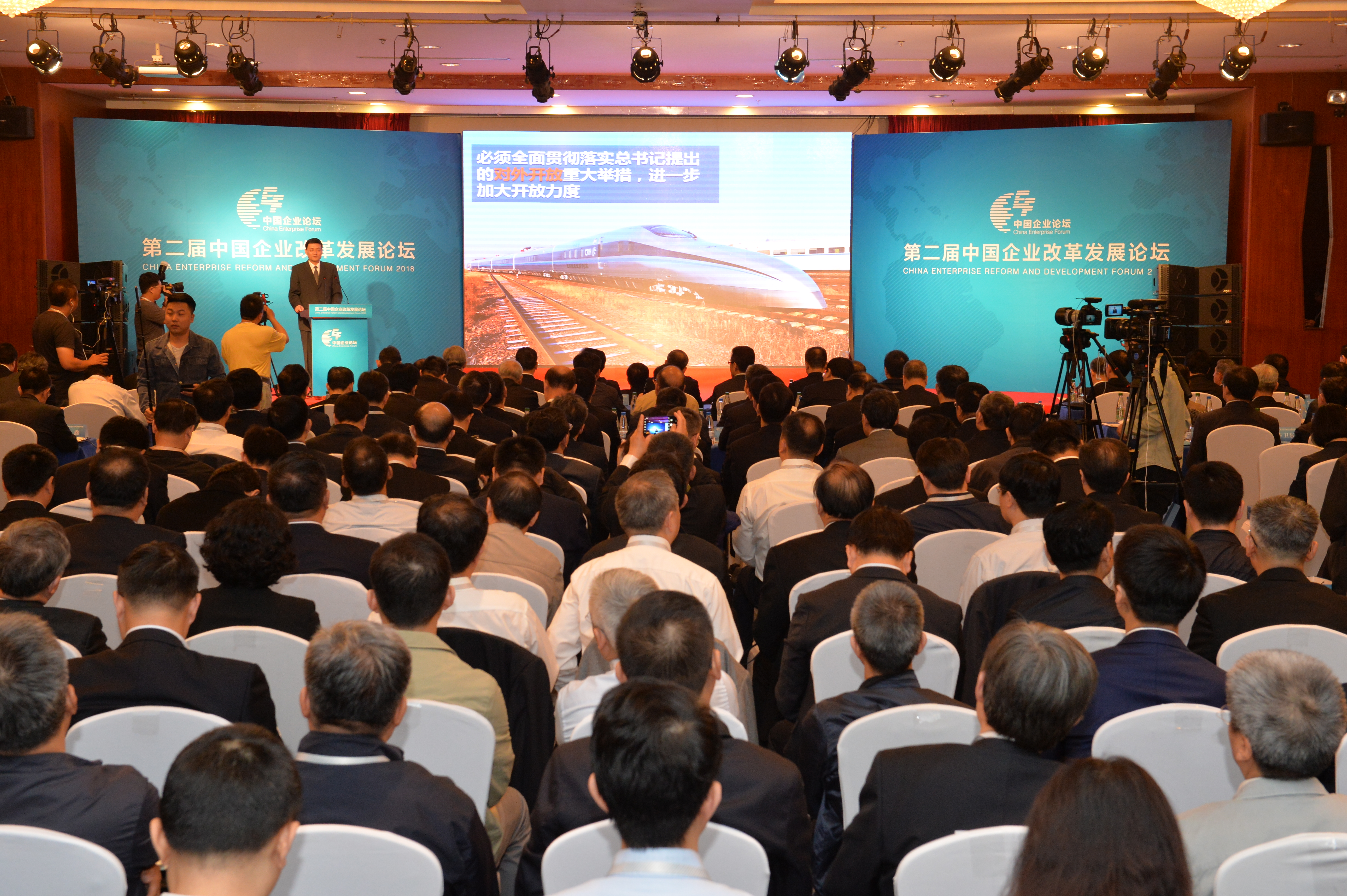 4月21日,第二届中国企业改革发展论坛在京举行。论坛以习近平新时代中国特色社会主义思想为指引,深入贯彻党的十九大精神,全面落实习近平主席博鳌亚洲论坛2018年年会重要主旨演讲精神,为深化国企改革,继续扩大开放,努力培育具有全球竞争力的世界一流企业凝聚共识、汇聚力量。中央统战部副部长、全国工商联党组书记、常务副主席徐乐江,国务院国资委主任肖亚庆,新华社副社长兼秘书长刘正荣分别致辞。国务院国资委副主任翁杰明出席论坛。来自各级政府、各类企业、经济研究机构和媒体等领域的近400人参加论坛。